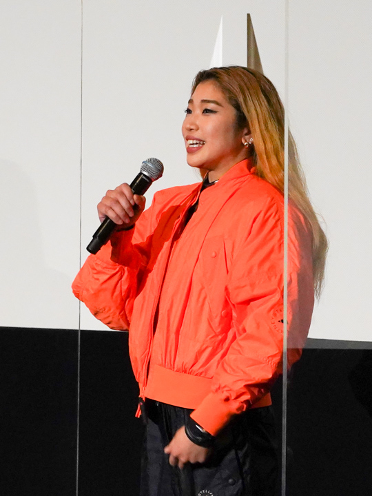 舞台挨拶では出演している野中生萌選手と映画をサポートしているアディダス ジャパン株式会社 トーマス・サイラー副社長が登壇し、質問が飛び交いました。