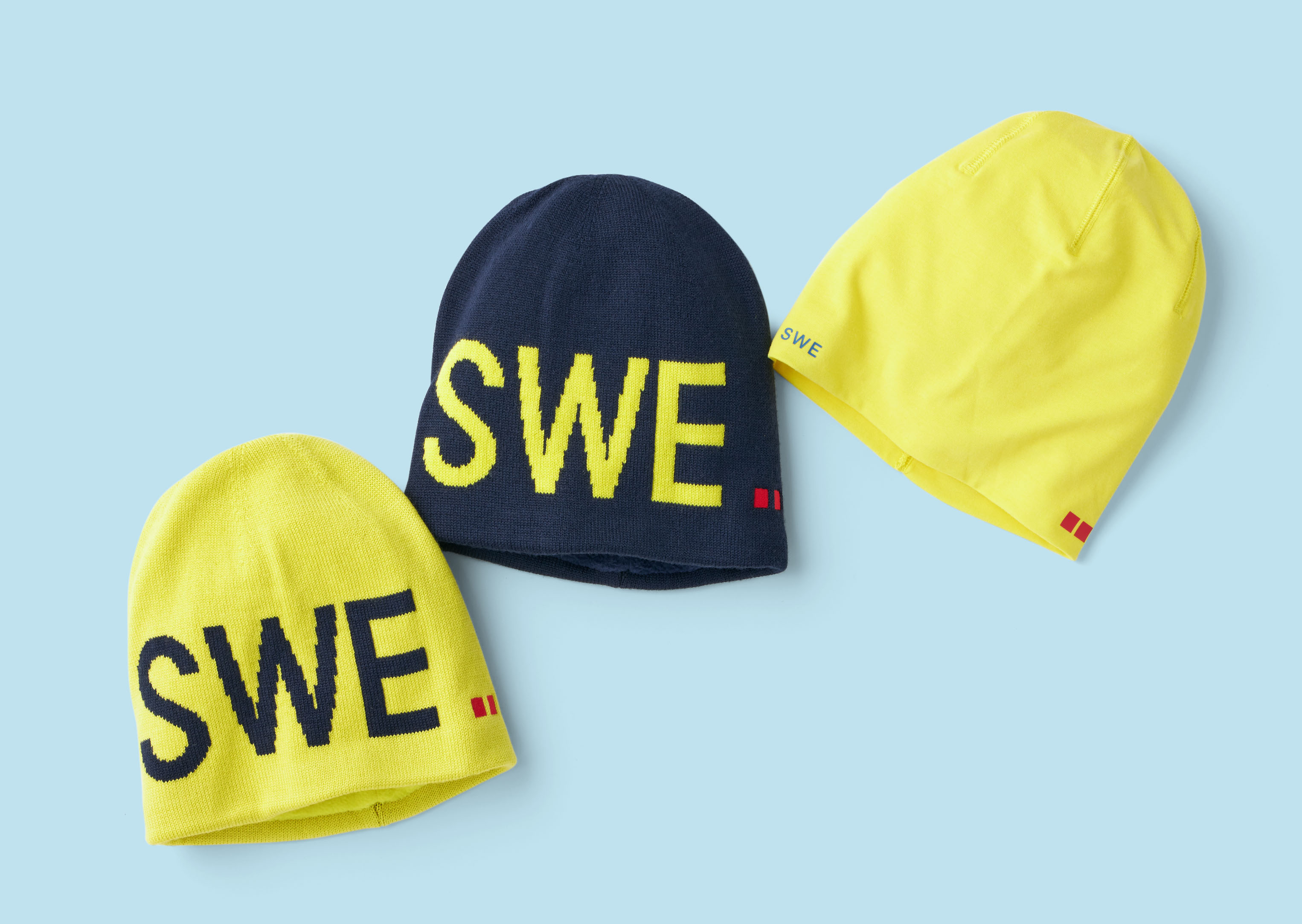 今回のウェアコレクションは、青と黄のスウェーデンカラーが基調。
