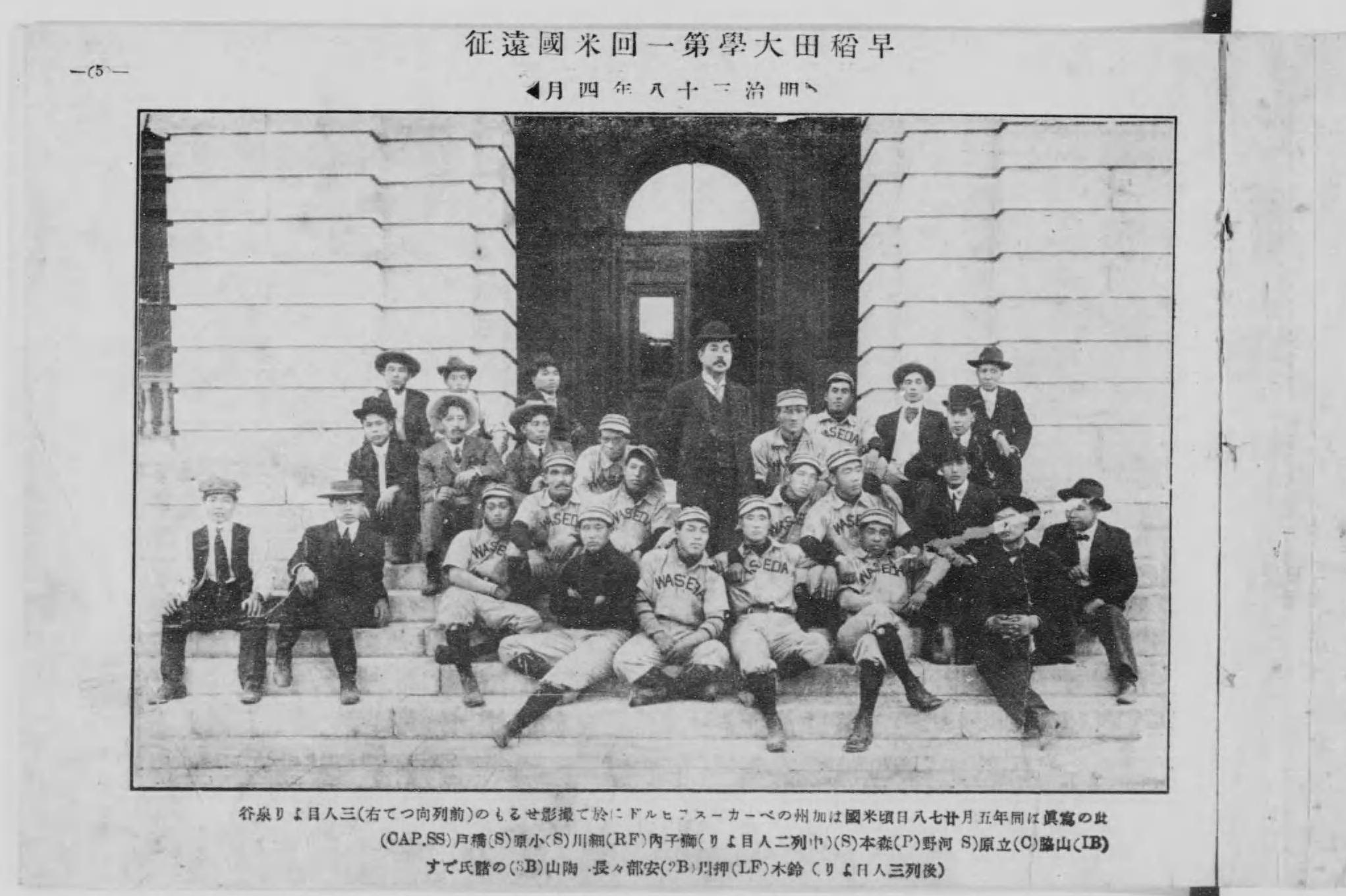 ▲野球殿堂の押川、橋戸、河野が在籍していた当時の早稲田大学野球部(『野球歴史写真帖』国立国会図書館蔵)