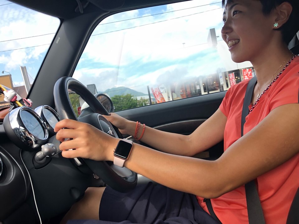 運転はなんと、寺田選手本人! いつも自分で運転されているとか。10年以上の相棒、ミニクーパーに乗りこみ、果緒ちゃんの楽しい歌声を聴きながら競技場を後にすると、日本新記録を出した最強ハードラーからすっかりママの顔になっていました。