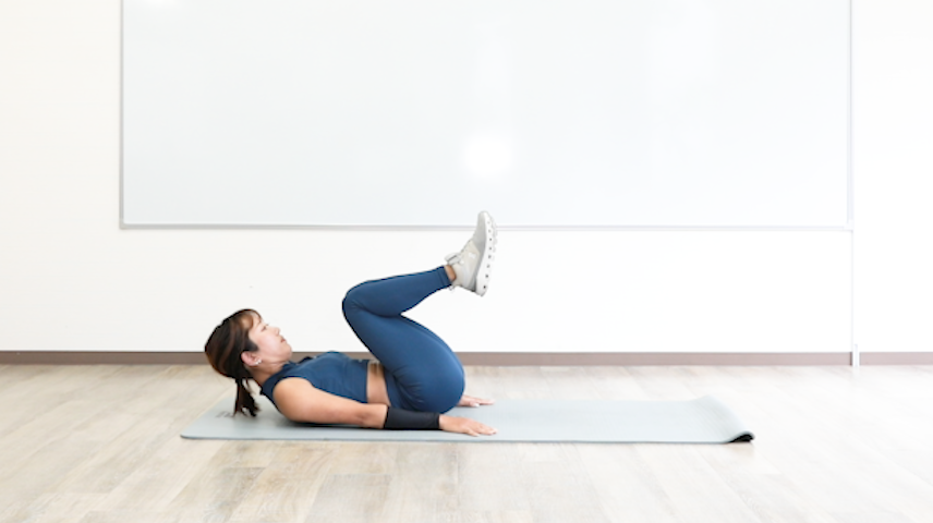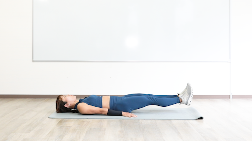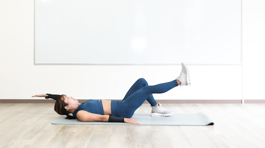 1. 仰向けになり、片膝は立てて片足は伸ばす