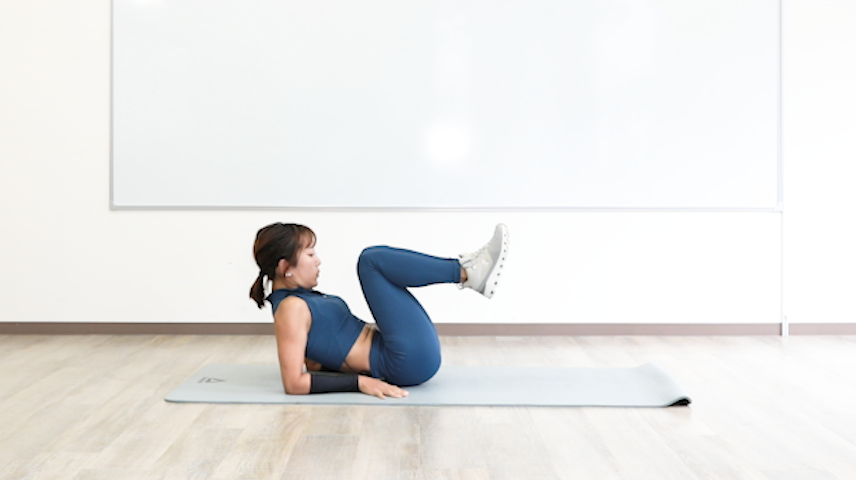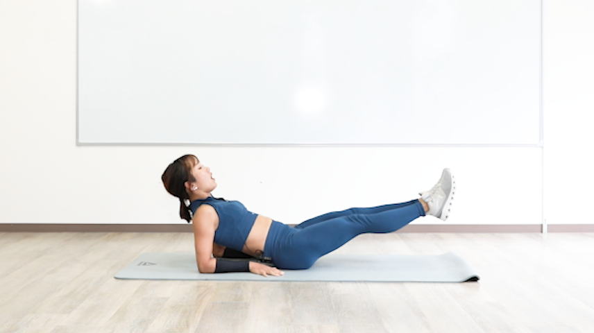 2. 頭を少し持ち上げる(へそを見る意識で)