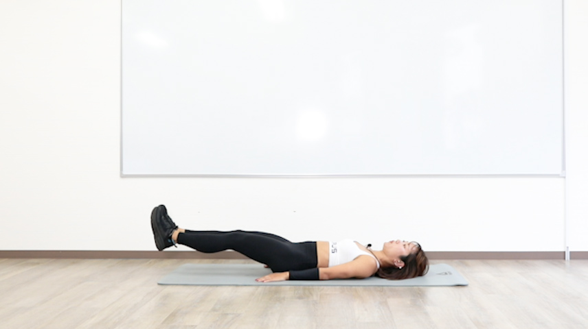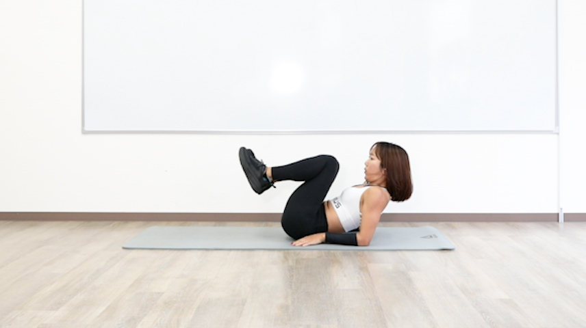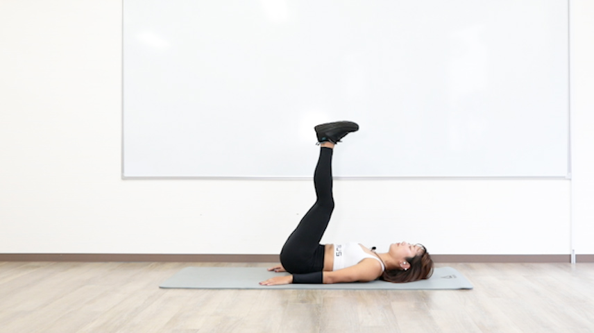- 足を揃えて地面から浮かせ、90度まで上げていく