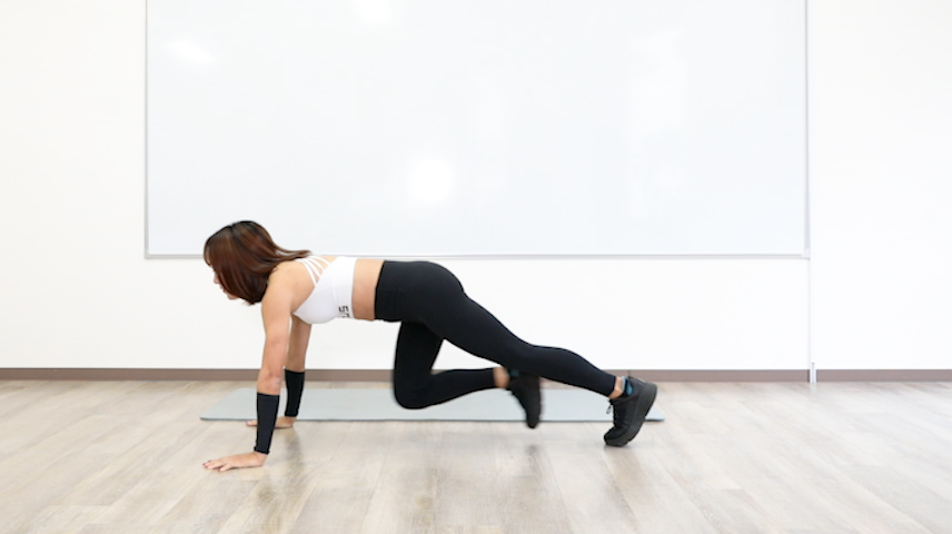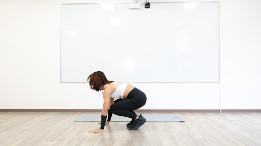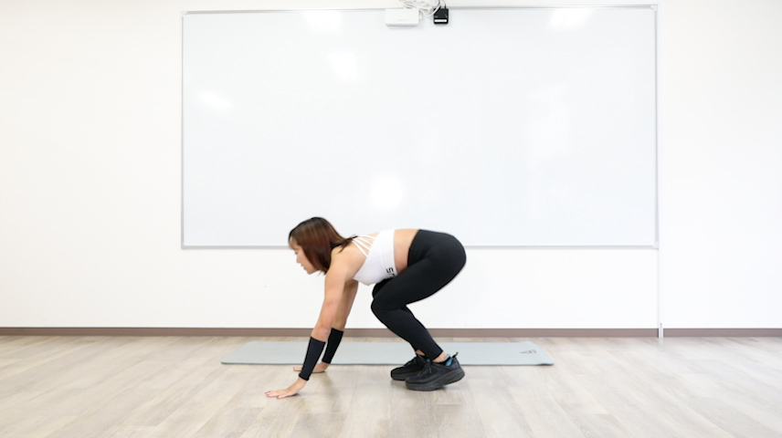 3. 両足を一緒に後ろへ伸ばしてから、元の位置に戻す