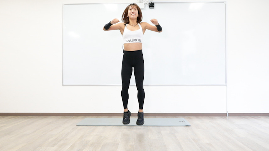 - 膝は軽く曲げ、つま先で地面を押すイメージでジャンプする