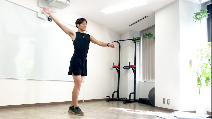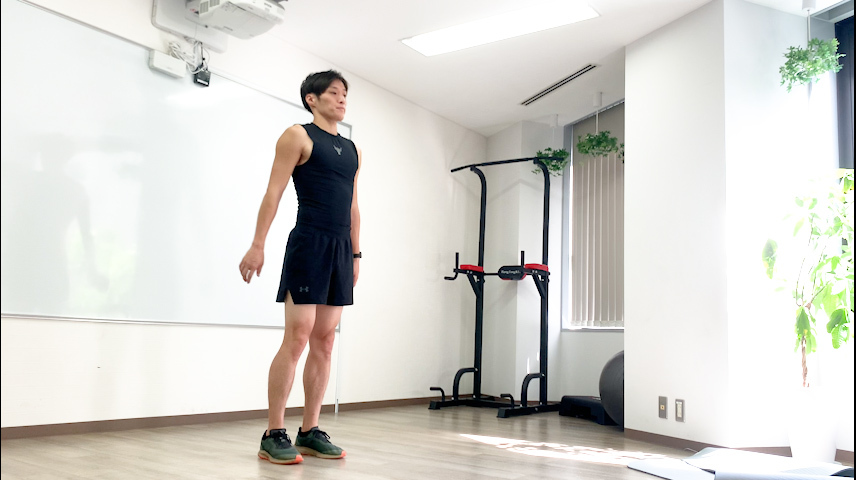 - まっすぐ立った状態から肩幅ほどに脚を開きましょう。