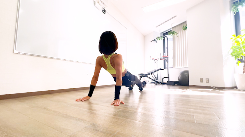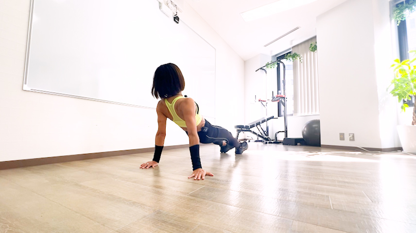 - 腕立て伏せの姿勢になります。