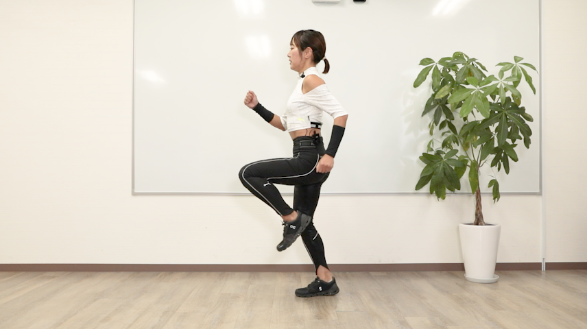 今回、有酸素運動のなかでも強度が高い種目を組み合わせました。2回に1回はジャンプ種目が入っているので、しっかり跳んで脂肪を燃焼させていきましょう。