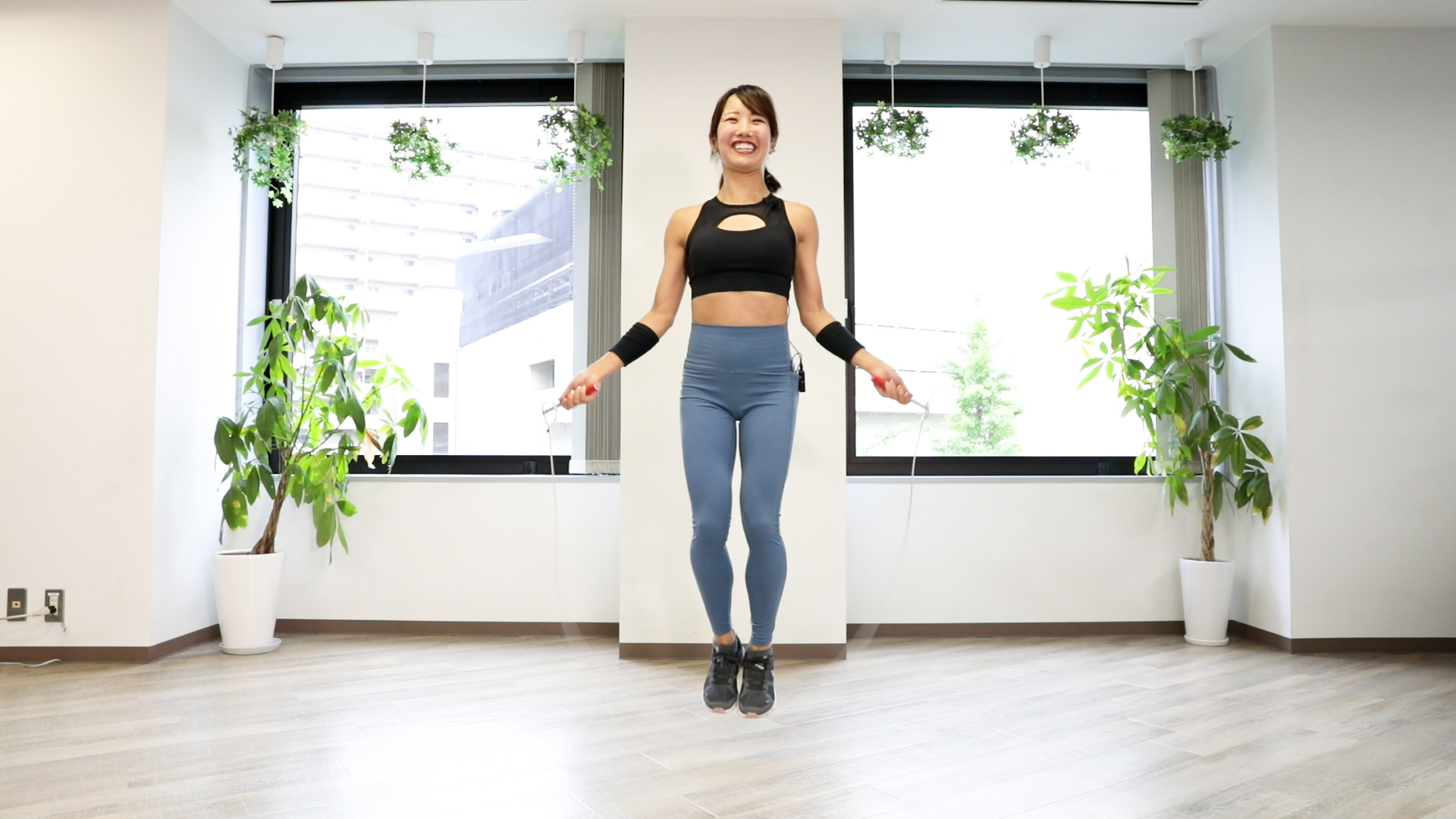 今回は3種類の有酸素運動を組み合わせた、ダイエットメニューをご紹介。なわとびを用意して一緒にトレーニングしていきましょう。なわとびがない方はその場でジャンプするだけでもOK。動画を流しながら、なるべく同じペースで行ってください。