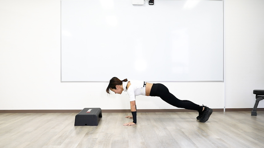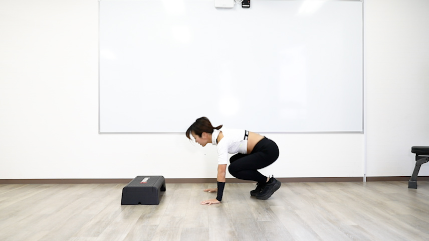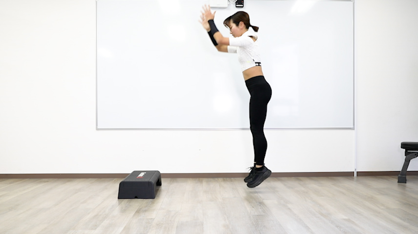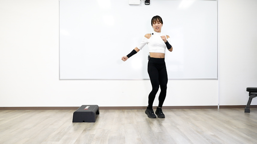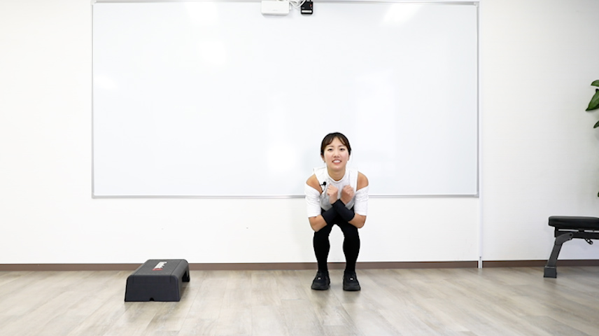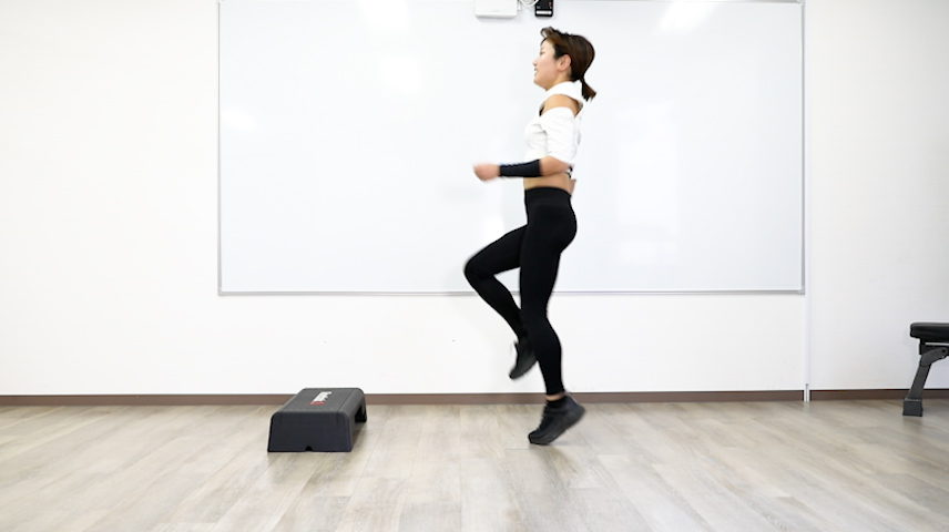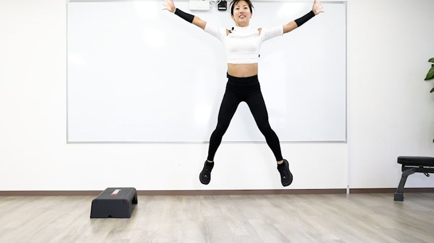 心拍を上げていくだけでなく、同時に大きな筋肉も動かすことで、脂肪燃焼効果をより高められるトレーニングです。キツいメニュー内容ですが、最後まで動き続けることで、高い効果が得られます。