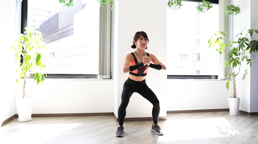 定番メニューの『スクワット』もゆっくり行うことで負荷が高まり、より高い筋トレ効果が期待できます。正しい姿勢で行っていきましょう。