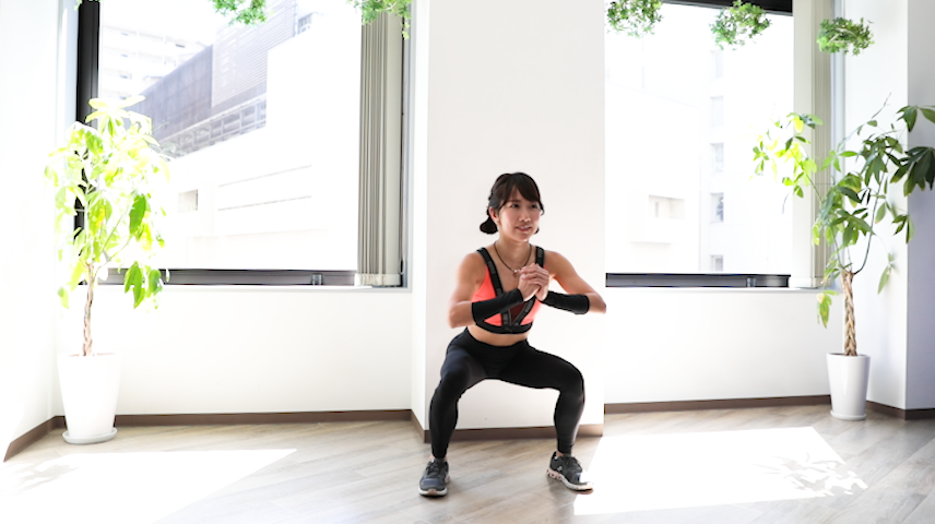 今回は「スクワット」「レッグランジ」「ヒップリフト」の3メニューのそれぞれスローバージョンを紹介します。ゆっくり動くことで負荷が高まり、筋トレ効果アップが期待できます。また「正しい姿勢がとりやすい」「どこに効いているか意識しやすい」といったメリットもあります。