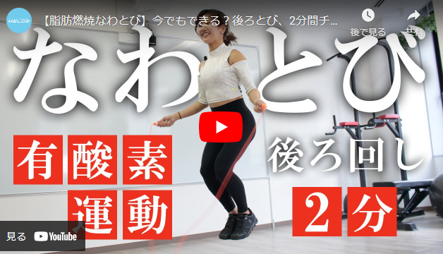 今回は、なわとびの後ろとびをやっていきます。子供のころはスムーズに跳べる人が多いなわとびですが、大人になると、かなり高負荷な運動メニューとなります。下半身の筋肉を鍛えるとともに脂肪燃焼効果も期待できますが、想像よりもきついかもしれません。慣れないうちは、無理をしないように気をつけましょう。慣れたきたら、縄を手首のスナップで回すようにしていくと、動作がスムーズになります。