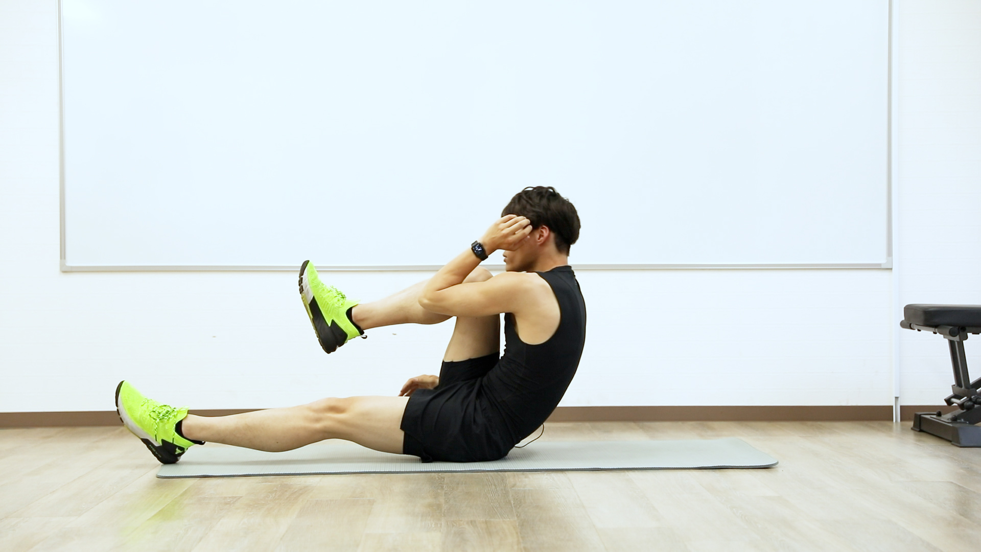 腹筋を割る、超負荷シットアップ。手足を振るから負荷がアップ (1/2)