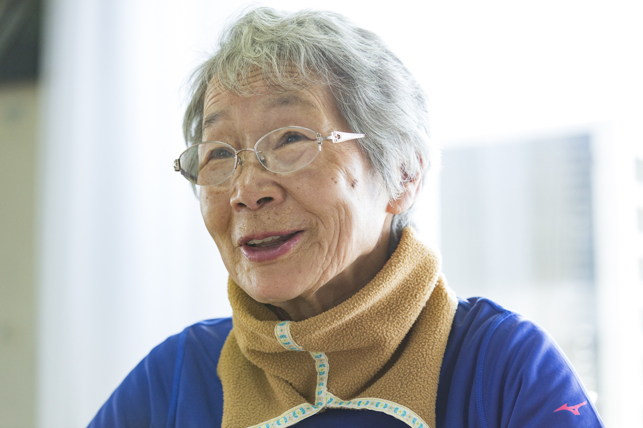 20代で始めた“基礎スキー”で準指導員の資格を取得し本格的に取り組む。70歳で引退し、ランニングを始める。その後ランニングクラブに入会し、基礎を学びながら本格的にランニングに取り組む。35歳以上のアスリートが参加する「全日本マスターズ陸上競技選手権大会」、75~79歳の部で3種目の世界記録と2種目の日本記録を持つ。2015年3月の横浜マラソンでも最年長女性ランナーとして競技に参加し、4時間11分50秒のタイムで完走。