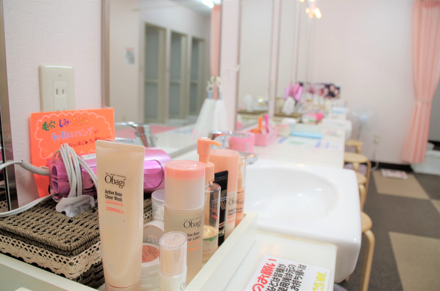 洗面台に目を向けると、化粧品などがたくさん! これは、薬局が運営しているからこそ。走ってシャワーを浴びた後、スキンケアもできます。特に女性にとっては大きなメリットとなりそうですね。