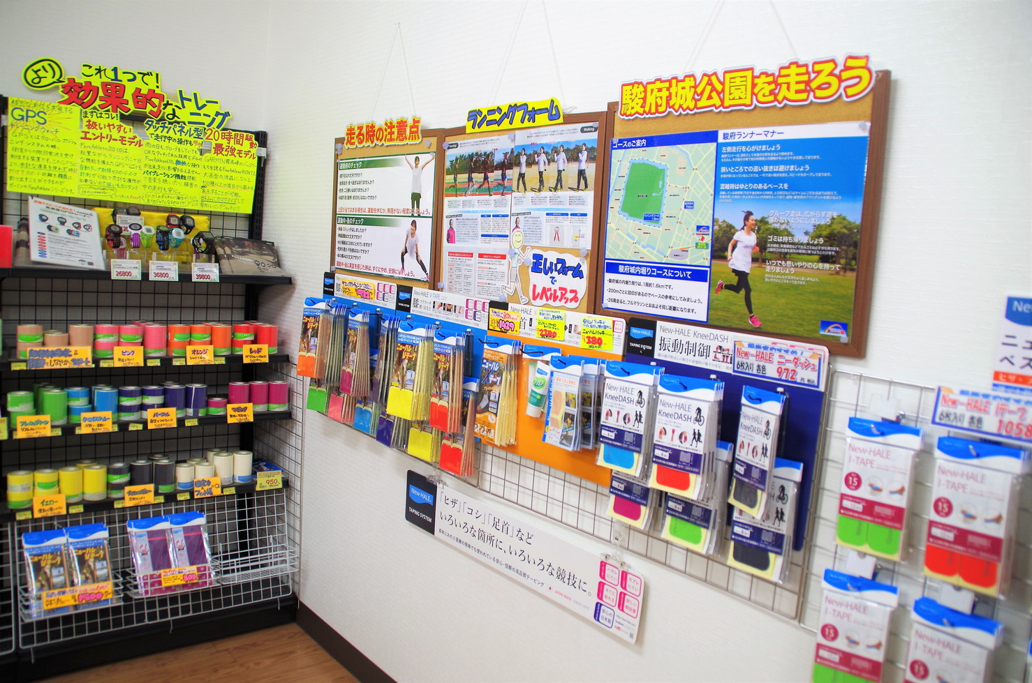 1Fはドラッグストアですが、ランニングステーション内でもテーピングなどが購入できます。トレーニングパフォーマンスをサポートしたり、痛みや違和感のある部位をサポート。薬局が選りすぐったアイテムだけあり、信頼度は高いでしょう。