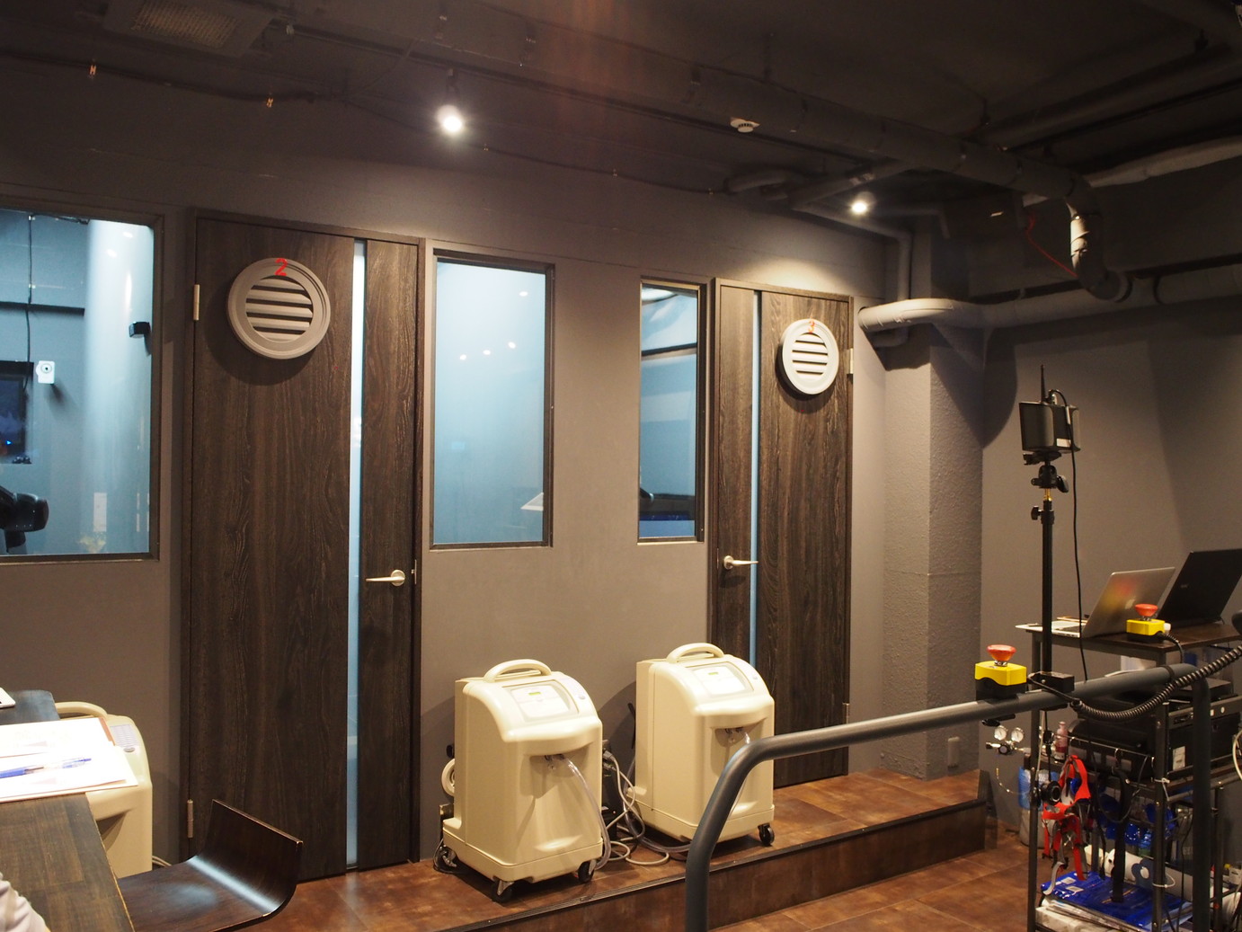 施設に足を踏み入れると、まず目に飛び込んでくるのが3つの低酸素ルーム。この中でウォーキングやランニングを行えば、いわゆる“高地トレーニング”と同様の効果が期待できるといいます。しかもマスクを着用する必要がなく、トレーニングに集中しやすい環境です。