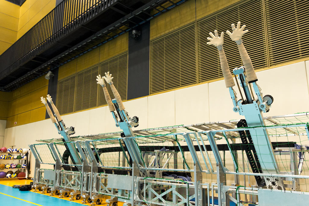 大きなマシンが左右にものすごいスピードで移動し、3m以上の高さまでせり上がりスパイクをブロックする。その迫力を理解してもらえただろうか。