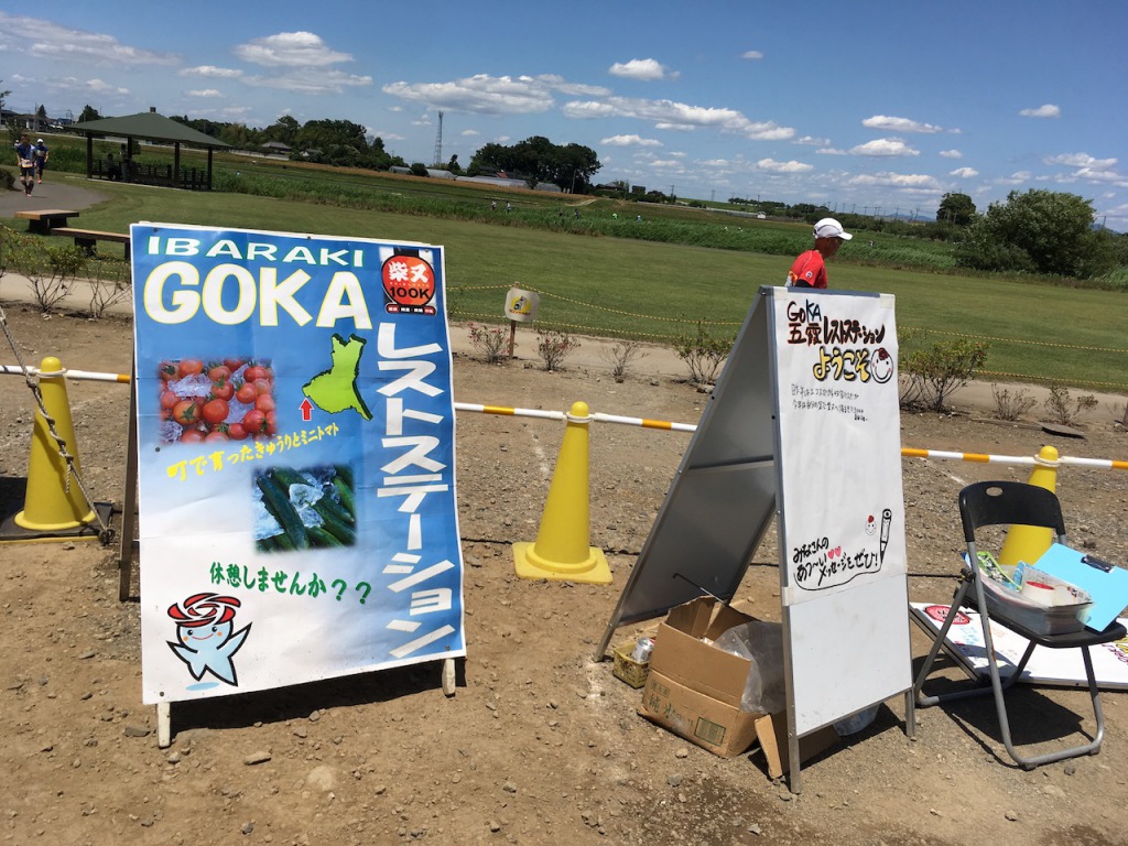 特に充実しているのが、折り返し地点(50.4km)にある五霞町のエイドステーション。新鮮な野菜、そしてうどんを食べることができました。地元の方々がたくさんボランティアスタッフとして待っていてくださり、非常に盛り上がっています。