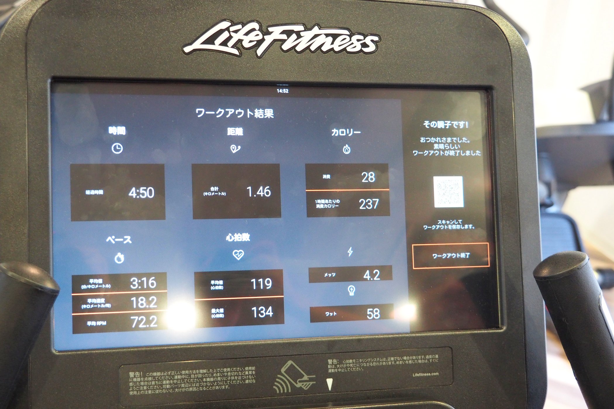 ▲体験後のワークアウト結果。走行距離、消費カロリー、心拍数などの細かいデータを参照できます