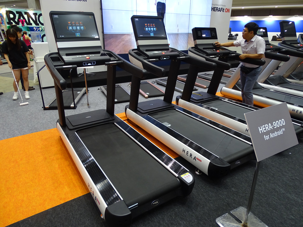 同じようにインターネット通信機能を搭載したトレッドミルなどフィットネスマシンを出展してたFitness Link Japanは、韓国のブランドが開発したAndroidスマホと連携する新製品「HERA-9000 for Android」などがブースの最前列に出展されて注目を浴びていました。