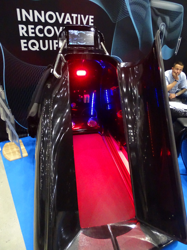 どちらもアメリカや欧州、中国・韓国で話題沸騰のトリートメントなのだとか。サッカーやボクシングのトップアスリートが全身にたまった疲労を回復させるために使ったり、アンチエイジングの効果もあるとされているところから注目を浴びています。本体内蔵のサーモカメラで体温を測定して、モニターを見ながらクライオセラピーを安全に使えるので心配もなさそう。Vacu Activeの担当者は今回のスポルテックをきっかけに、ぜひ日本進出を実現したいと意気込みを語っていました。ど迫力のデザインが高級フィットネスジムに意外とハマりそうな気がします。