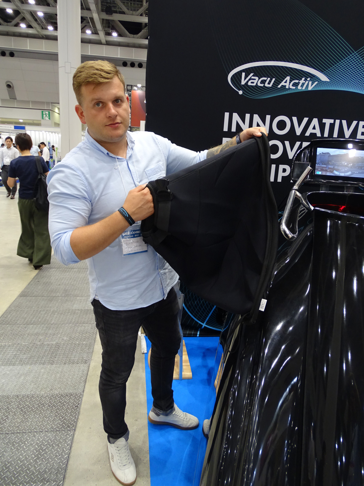 Vacu Activeはスポルテックに初出展したポーランドのフィットネスマシンのメーカーです。尖った機能やデザインが印象的な製品は会場でも注目の的になっていました。