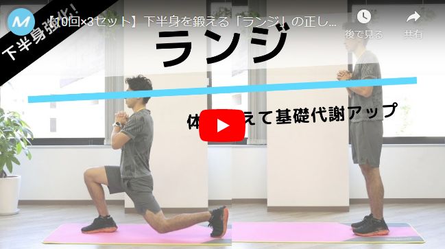 ランジで身体がぐらつく場合、お腹まわりに力を入れ、足裏をしっかり地面につけると、ぐらつきが安定しやすいでしょう。