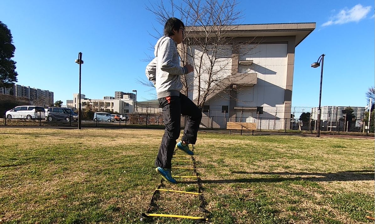 ラダーと呼ばれるハシゴ状のアイテムを用いて、俊敏性と効率よく走るスキルを身につけるトレーニング。横側の筋肉も鍛えることができ、バランス感覚を養う効果もあります。走る練習や筋トレに飽きたら、こうした種類のトレーニングはいかがでしょうか。