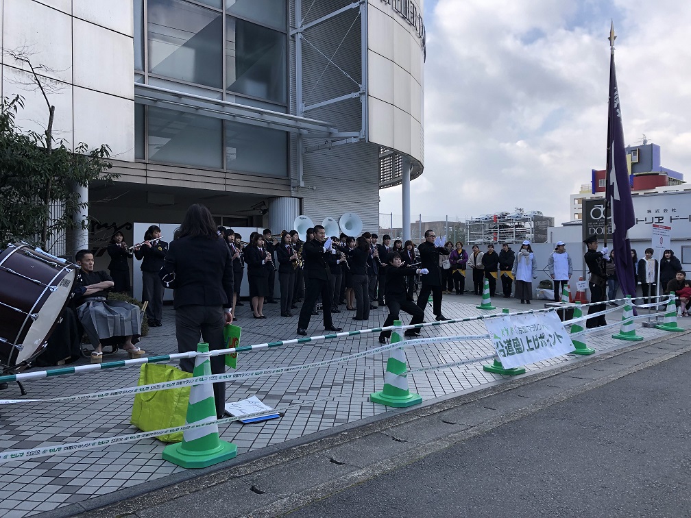 23km付近の給食所では、都こんぶ。次の給食所である26㎞過ぎでは、前日のエキスポ会場で目にして楽しみにしていた、待望の生八ツ橋が登場。カロリーを消費しているランナーに、酸味の効いた粉をまぶしたスッパい酢こんぶや、元禄時代から親しまれている、つぶ餡の食感もうれしい八ツ橋の上品な甘さが、ランナーにとって、疲労を回復させるだけでなく、癒し効果の一つとして、疲れた心にほっこり感をもたらしてくれました。