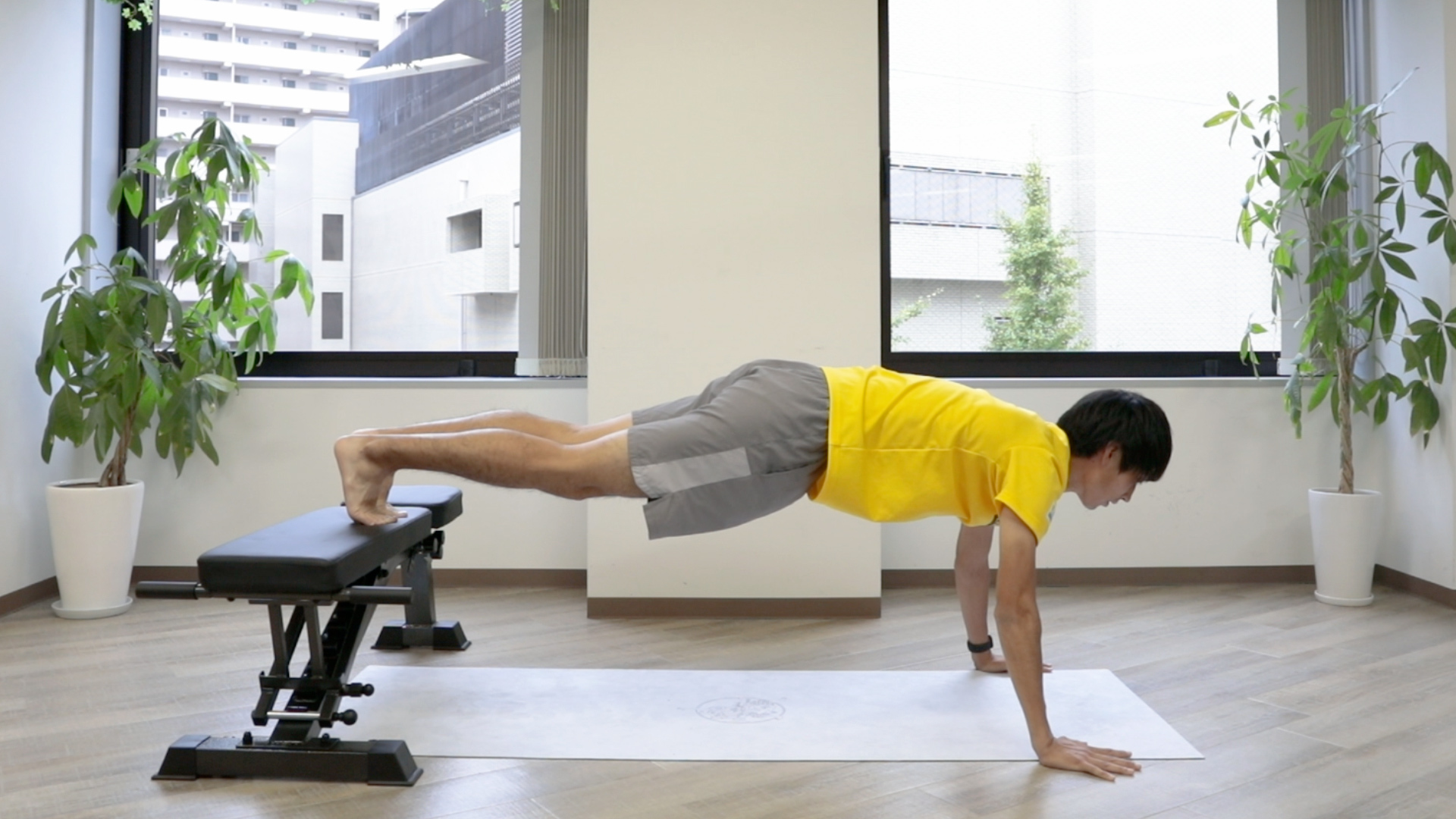 足の位置が高いほど強い負荷がかかるので、初心者の方は高くしすぎないようにしましょう。