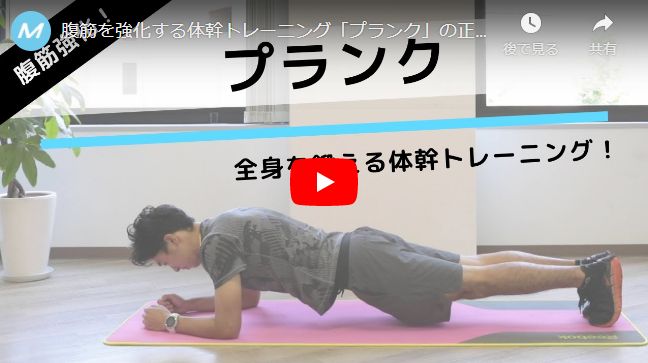 体幹トレーニングとしてもっとも有名な「プランク」。姿勢が崩れると腹筋群への刺激が少なくなるので、必ずカラダを一直線にキープしましょう。