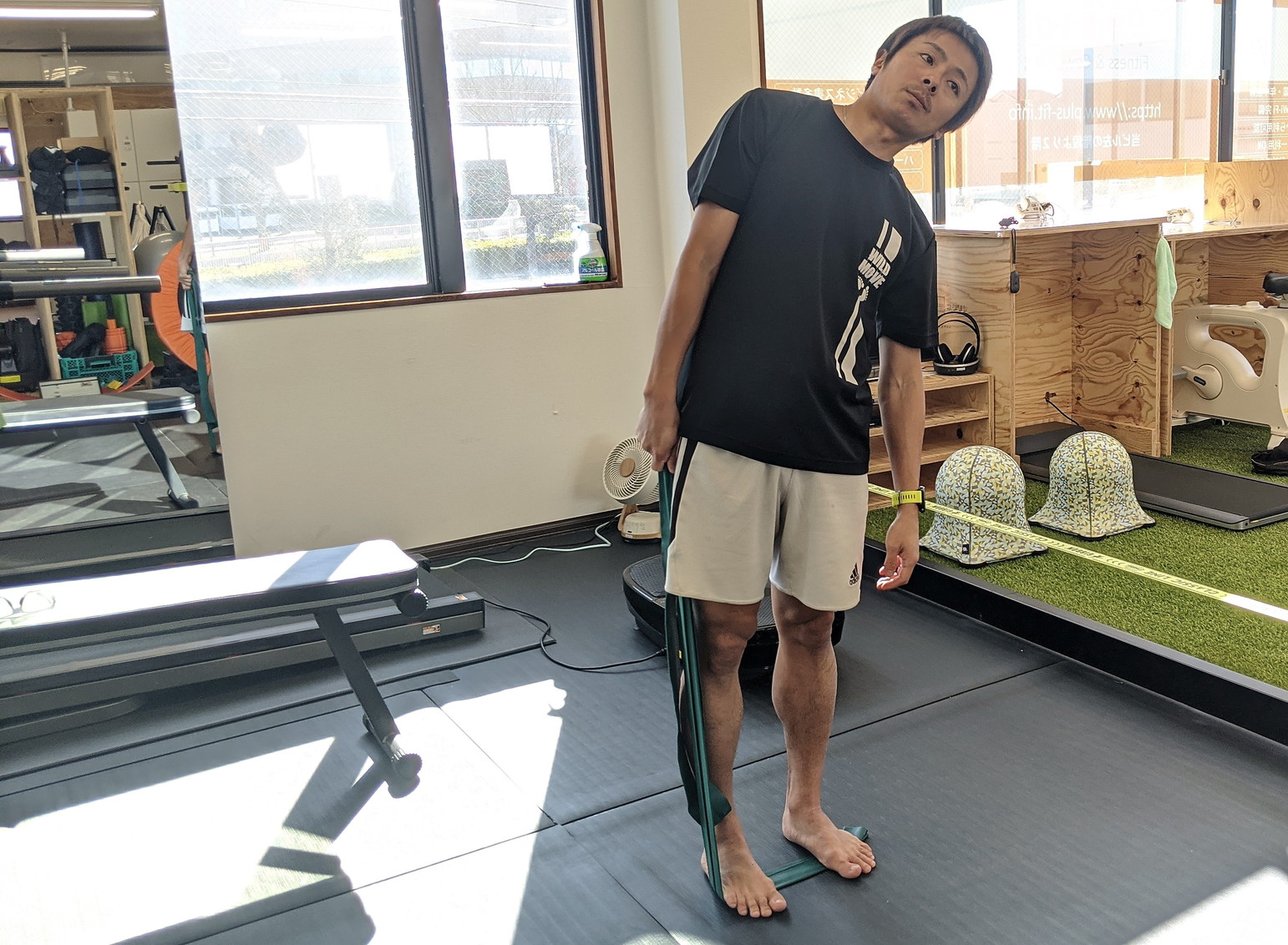 頭から1本まっすぐな軸があるような意識で、身体が前後左右にぶれないよう注意してください。