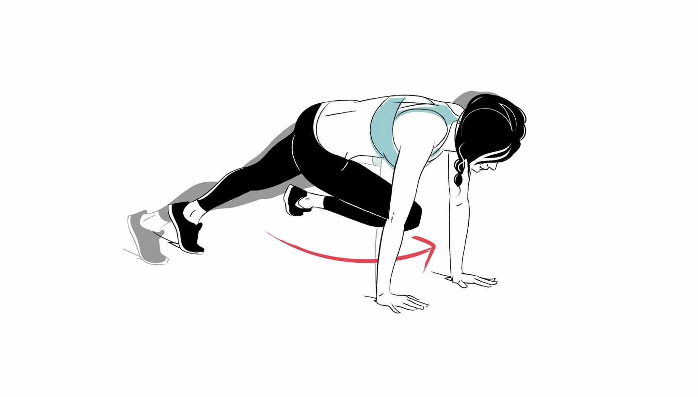 マウンテンクライマーは筋力を鍛えるほか、脂肪燃焼、呼吸器系の強化も期待できる優れたトレーニング方法のひとつ。全身を支える腕(上腕二頭筋や三頭筋)、脚を引き上げるためのお尻(大臀筋や腸腰筋)、上体を起こし続けるためのお腹(腹直筋)など、体全体を引き締めて鍛える効果が見込めます。