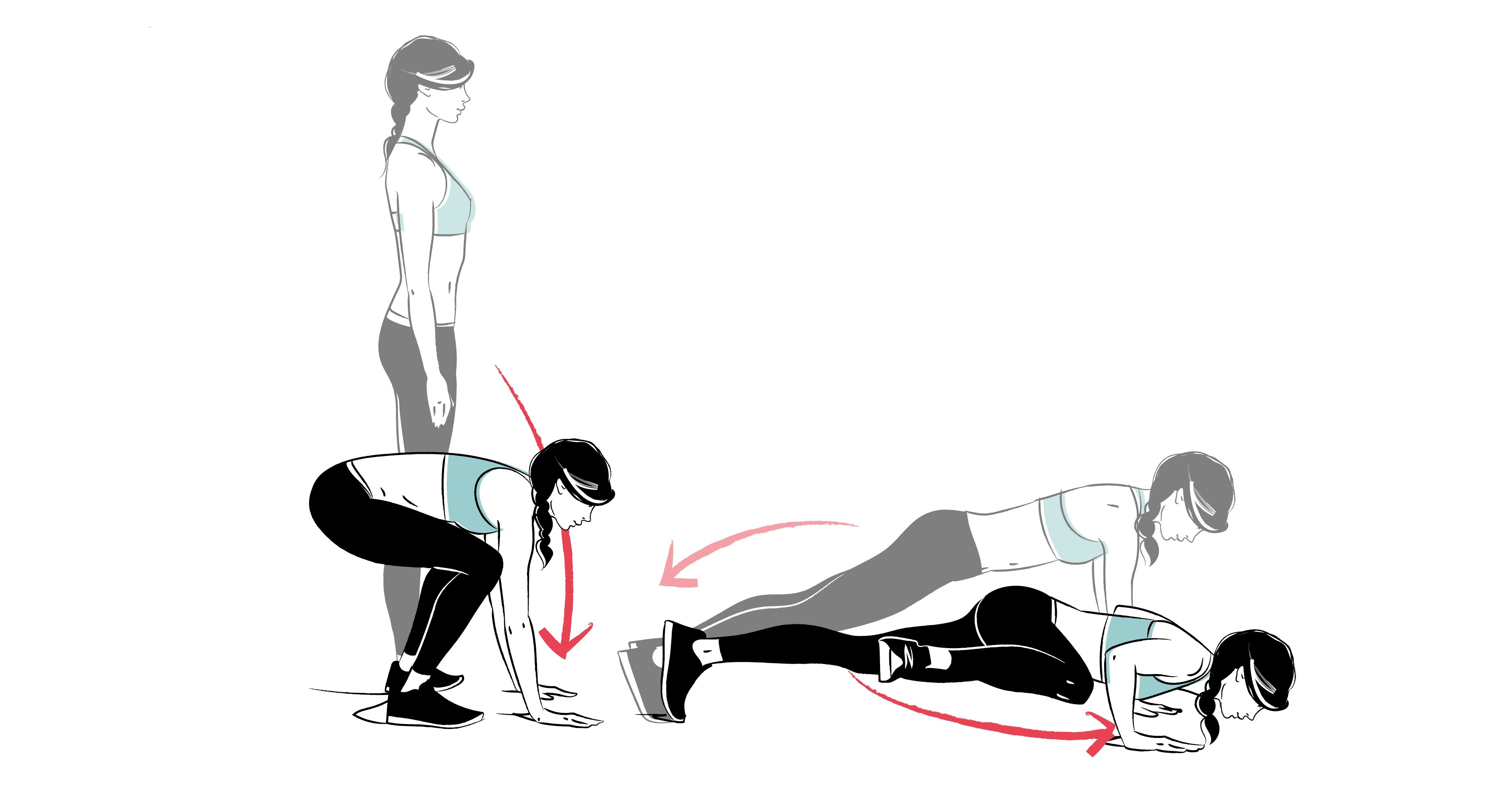 お尻が下がると肘が曲がらないので、お尻はつねに上げた状態をキープしましょう。