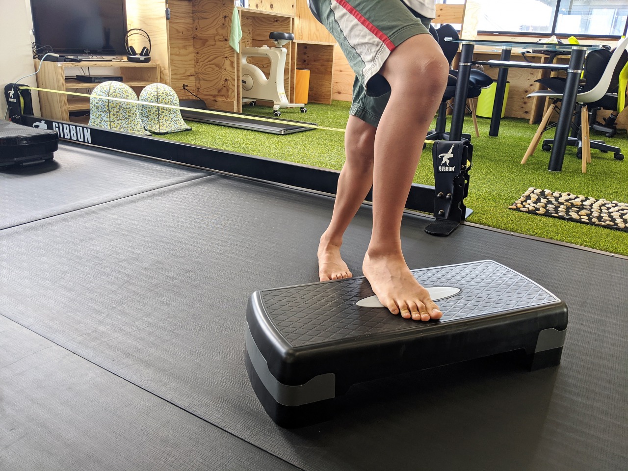 ステップ台に乗らず、前後左右に飛び越えるトレーニングもよいでしょう。ジャンプ運動は、おもにふくらはぎなどの筋肉が鍛えられます。反発を生かして着地時間を短く、リズミカルに行ってみてください。ただし、左右のジャンプは慣れていないと着地に失敗し、足首を捻ったり転倒する危険があります。