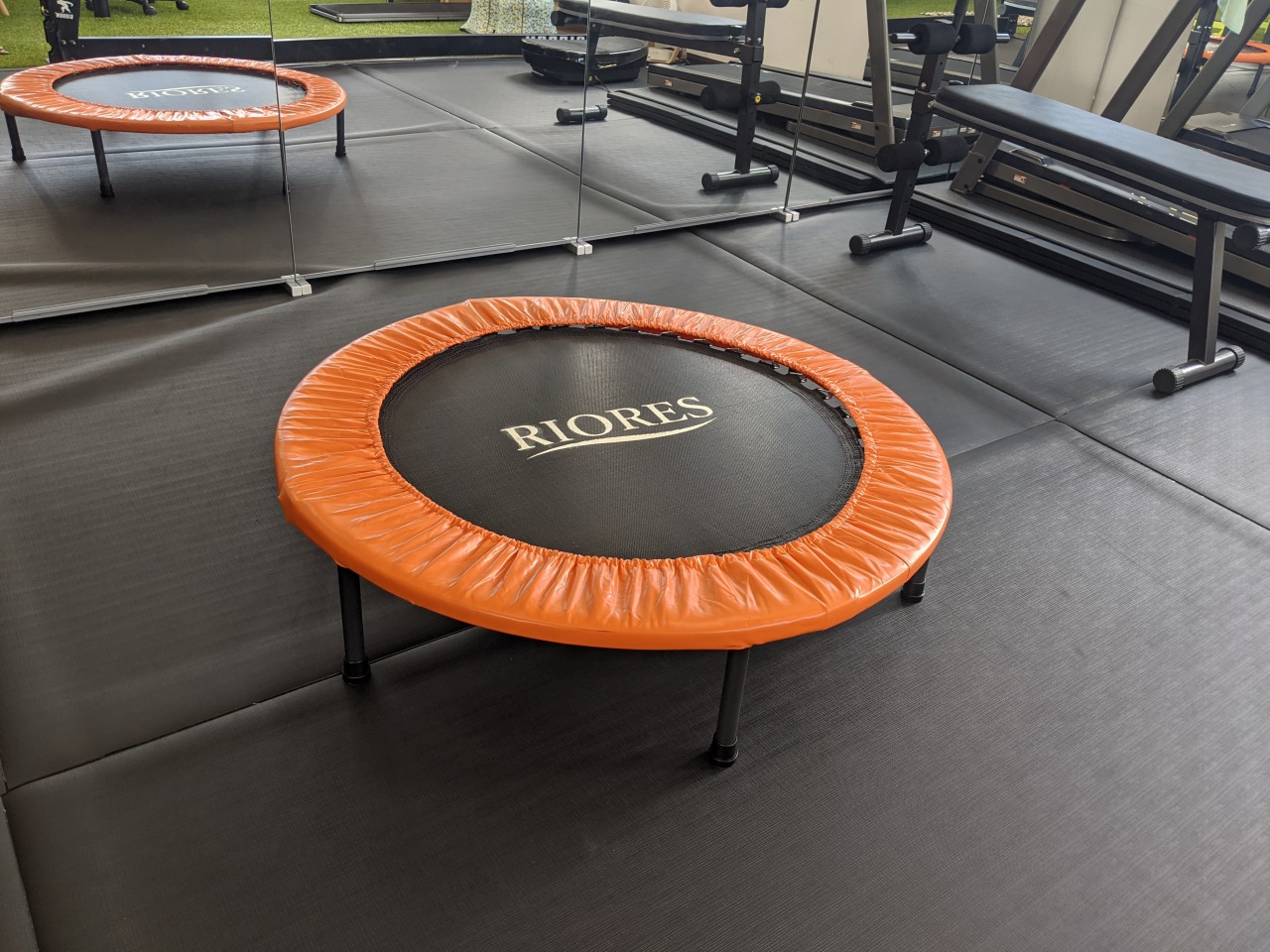 ジャンプ運動を通じて全身の筋肉に刺激を与えながら、有酸素運動を行うことができます。特に体幹や下肢には思っている以上に負荷が掛かり、トランポリンを飛び続けているだけでも、次第に息が上がってくるはずです。