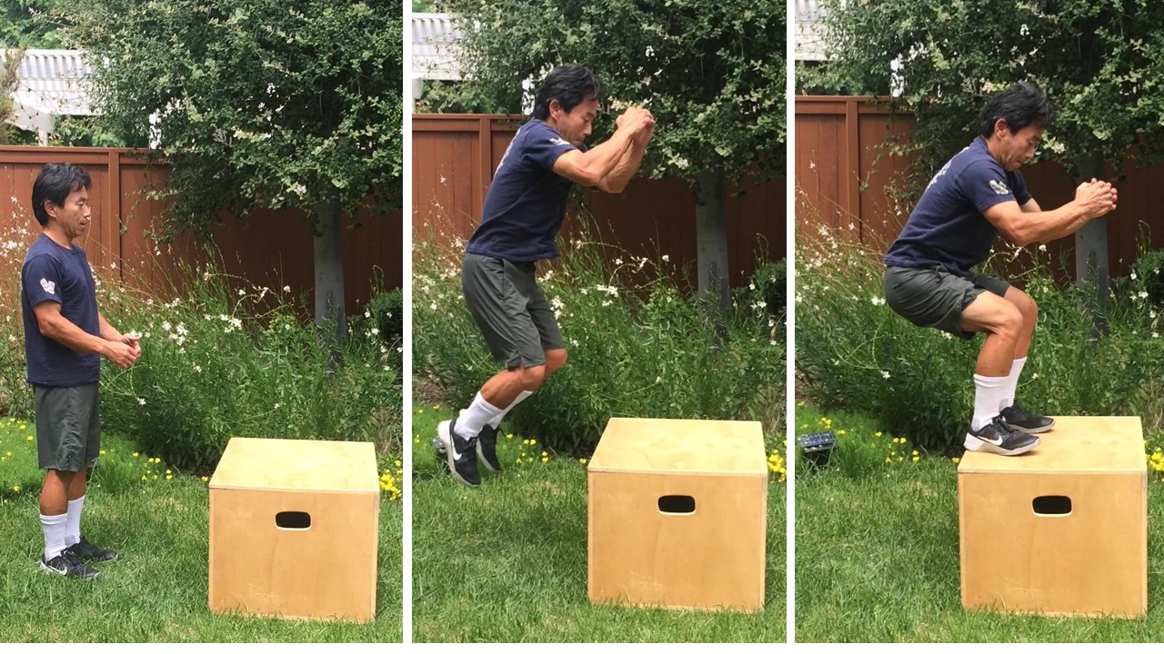 ▲ボックスジャンプ。器具がなければ、平地での両足ジャンプに変更しても構いません