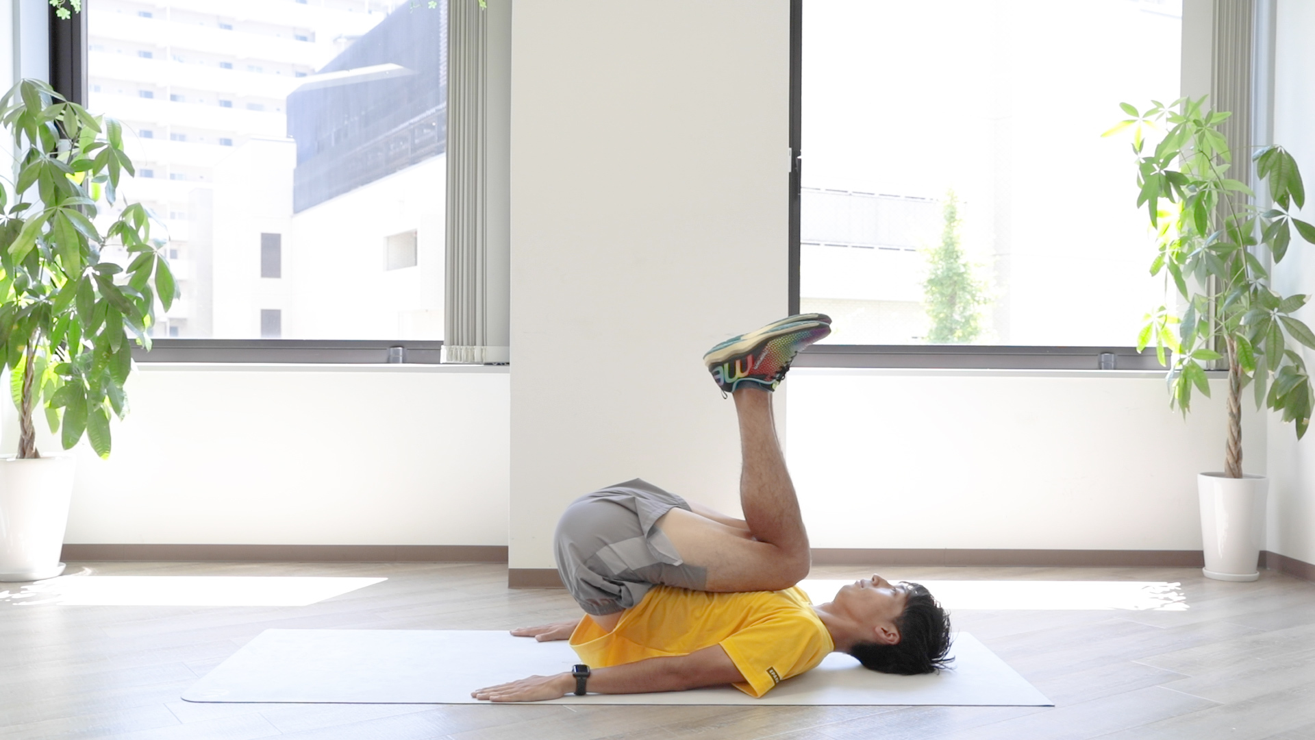 3. 両ひざを胸に引きつけ、止まったあとに足を戻していく。