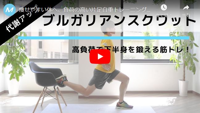 大臀筋などの下半身が鍛えられるトレーニング「ブルガリアンスクワット」。通常のスクワットとは異なり、片足で行なう負荷を高めた自重スクワットになります。