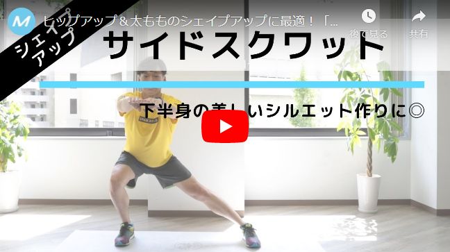 太もものシェイプアップやヒップアップなどが期待できるトレーニング「サイドスクワット」。普段鍛えにくい部位へアプローチすることで、基礎代謝が上がり脂肪燃焼などに効果的です。