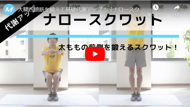 スクワットは、「筋肉BIG4」と呼ばれる大きな筋肉「胸・背中・腹筋・太もも」が鍛えられるため、効率よく筋力アップが狙えるメニューです。