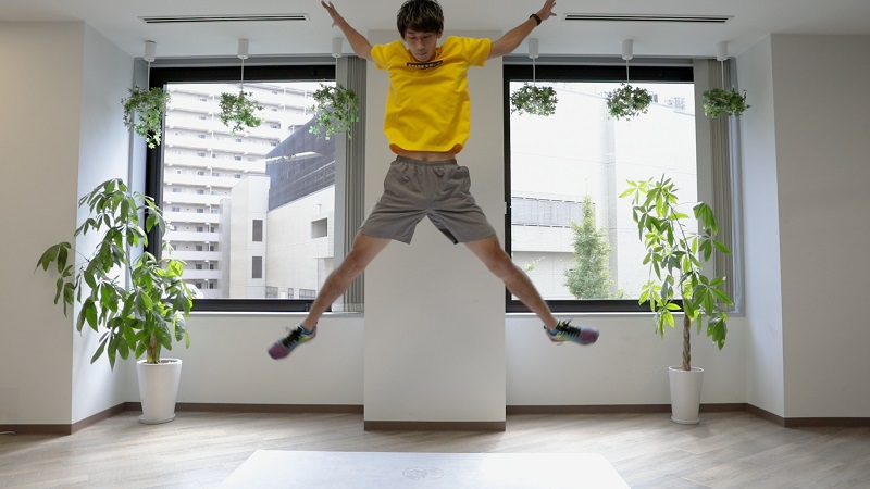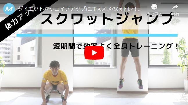 基礎体力アップにオススメの筋トレ「スクワットジャンプ」。しゃがんだ状態からのジャンプを繰り返すトレーニングです。