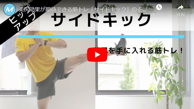 お尻の筋肉周りが鍛えられて、美尻効果が期待できる筋トレ「サイドキック」。スクワットを応用したようなトレーニングで、長時間の座り姿勢などで凝り固まったお尻周りを、効率的に鍛えることができます。