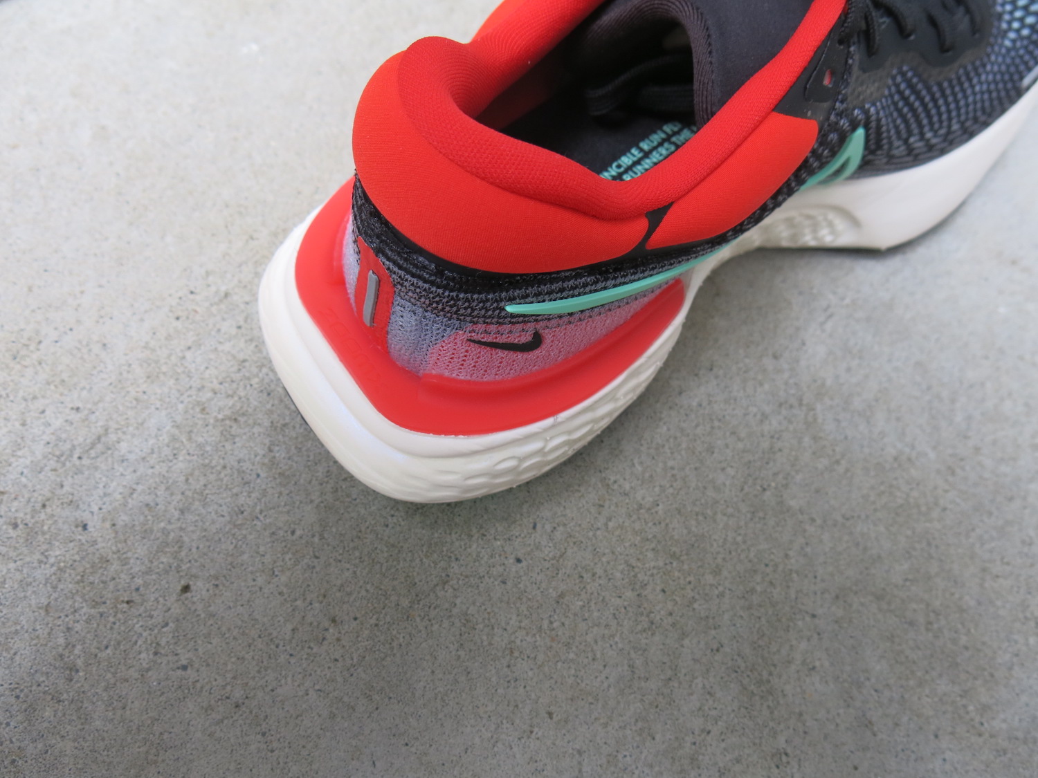 ナイキ フライニットを採用したアッパーは、爪先やフォクシング(アッパーとソールをつなぐ部材)の強度とサポート性を高める一方で、甲の部分や中足部の通気性が向上しているとのこと。そして、ランナーからのフィードバックを受け、履き口部分の足の擦れを防ぐためにパッドが搭載されています。