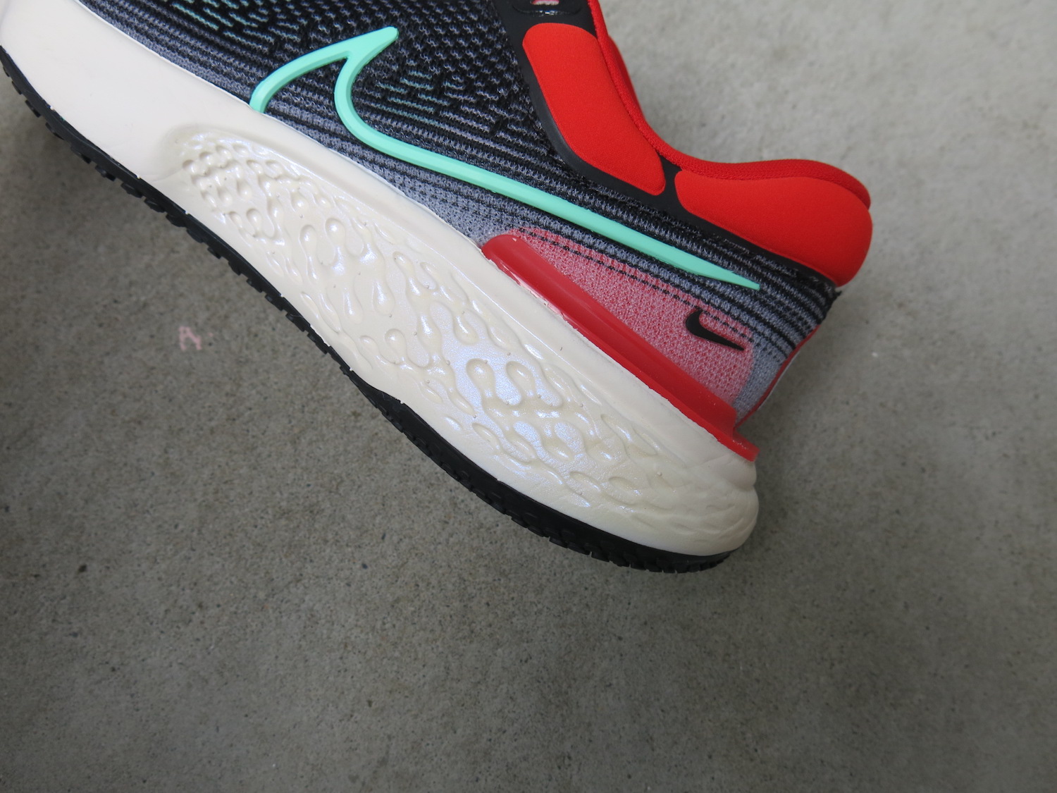 軽さ、耐久性、柔らかさと反発性を備えたリアクトフォームを採用したミッドソール、踵をホールドし足とシューズの一体感を高めるヒールクリップ、地面をしっかりと捉えるアウトソールは、前モデルを踏襲。大きくアップデートされたのは、アッパーです。