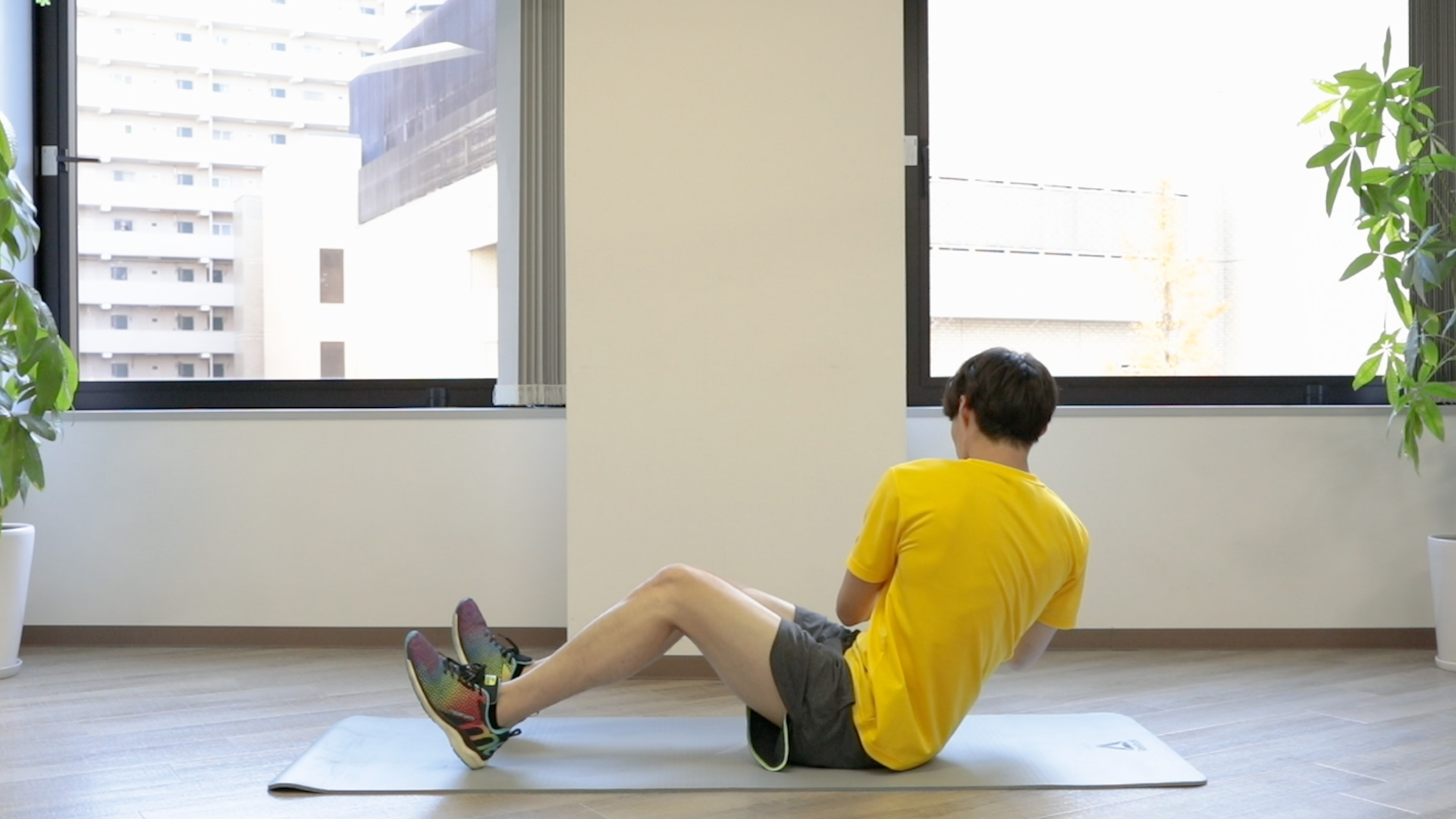 2. 両足を少し床から浮かせた状態でキープする