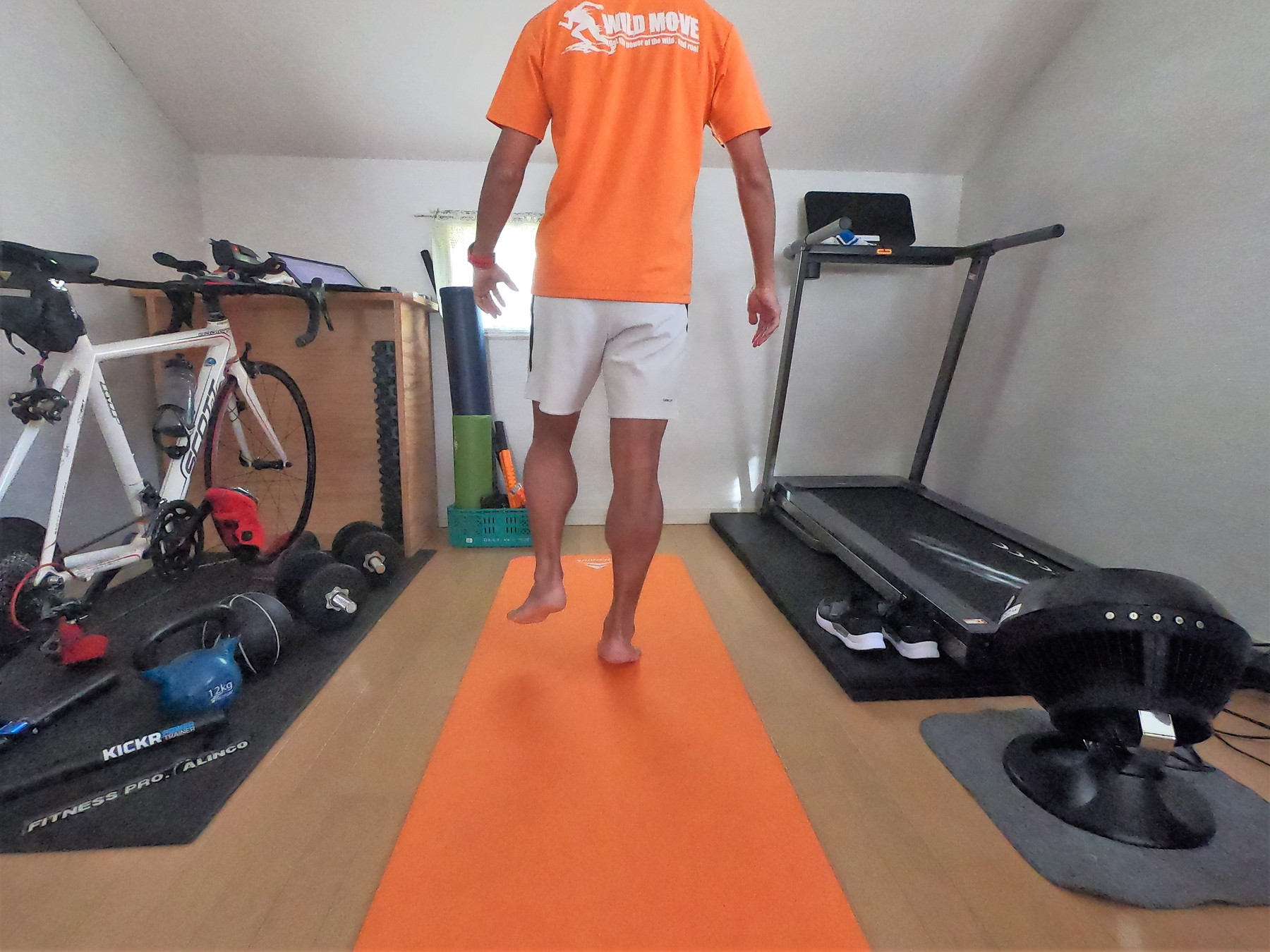 2.地面についている足のかかとを地面から浮かせ、つま先立ちになります
