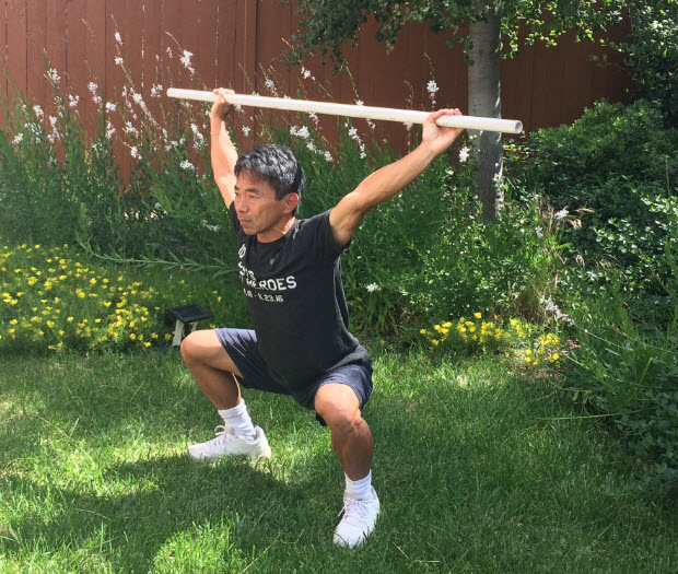 言い換えれば、オーバーヘッド・スクワットは自重スクワットで気づきにくい弱点やフォームの誤りを明らかにしてくれます。自重スクワットが問題なくできる人は、下記も試してみてください。